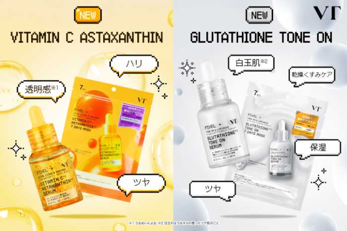 韓国発スキンケアブランドVT COSMETICSから、肌悩みに寄り添う新ラインが登場♡2026年4月18日(土)より、透明感※1を引き出す「ビタミンC アスタキサンチン」と、白玉肌※2のようなツヤを目指す「グルタチオン トーンオン」の2ラインが順次発売されます。毎日のケアに取り入れやすい処方と使い心地で、これからの季節にぴったりのスキンケアに注目です。