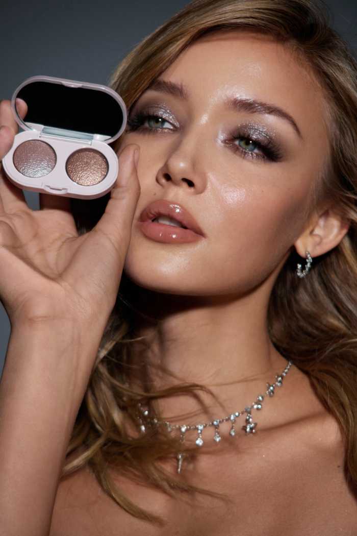 ラメでツヤを足すカラーと、しっかり発色するカラーの2色セットになっているため、これひとつでアイメイクが完成♪