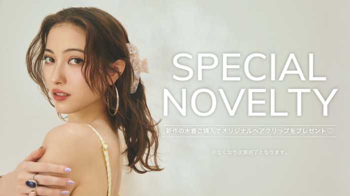 今回のコレクション発売を記念して、ノベルティキャンペーンも開催。新作スイムウェアを購入すると、RAVIJOURオリジナルのヘアクリップがプレゼントされます。