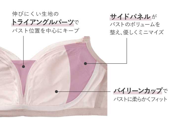バストのボリュームによる着こなしの悩みを解消するために誕生したミニマイザーブラ。