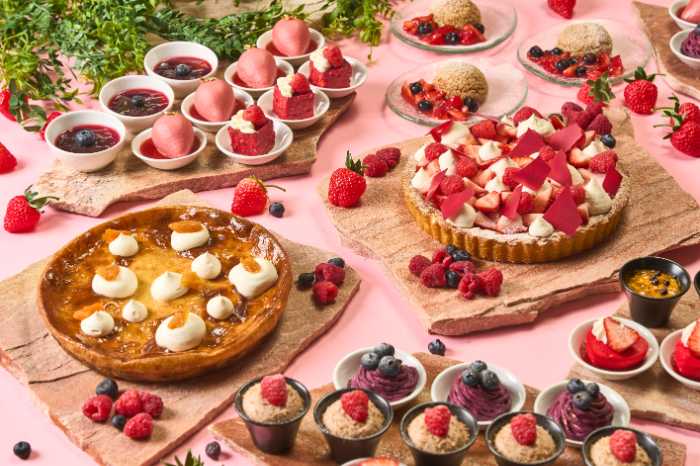 ストロベリー、ラズベリー、ブルーベリー、ブラックベリーなど多彩なベリーを使用したスイーツがずらり。