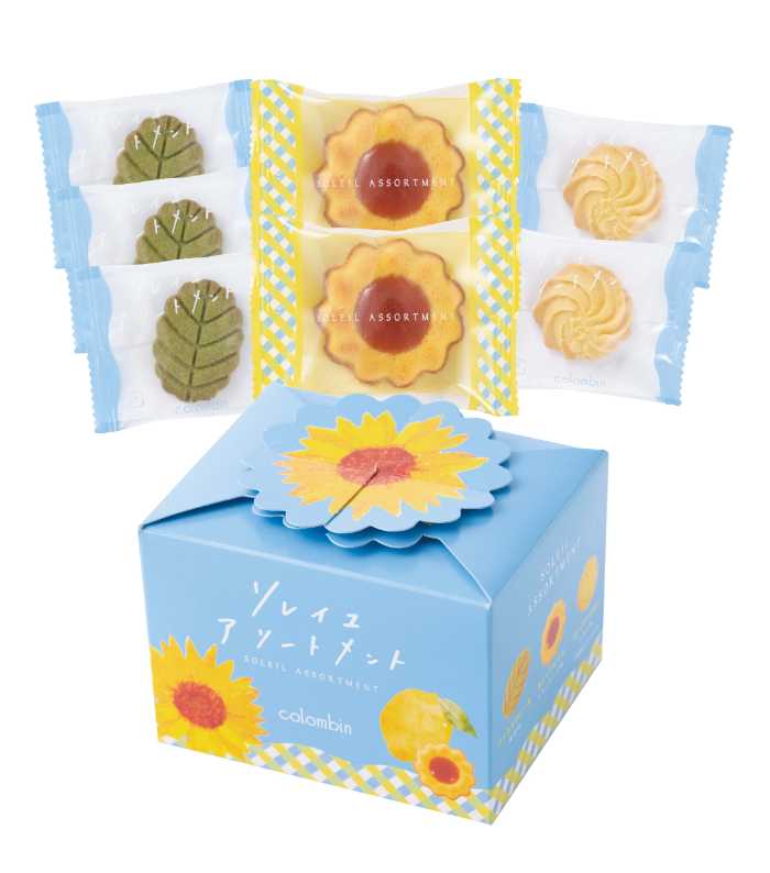 ひまわりをイメージした明るいビジュアルと、レモンや抹茶の爽やかな味わいが魅力の「ソレイユアソートメント」。