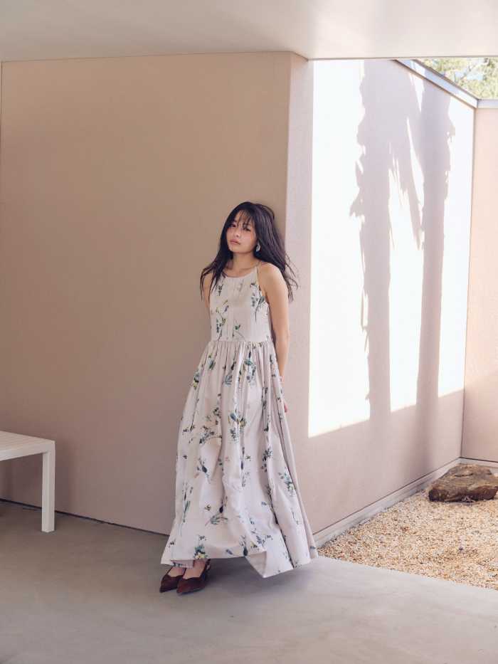 カーディガンやシャツとのレイヤードスタイルも楽しめ、リゾートだけでなくタウンユースにも取り入れやすいのがポイント。