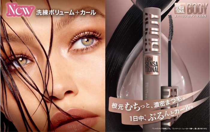 「メイベリン ボディ マスカラ」は、根元はむちっと濃密、毛先に向かって自然に細くなるシルエットを実現した新感覚マスカラ。