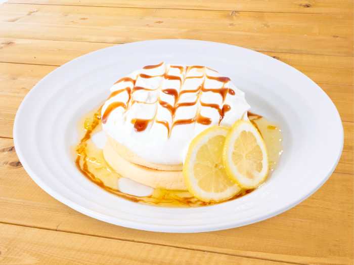 毎年大好評の「レモンヨーグルトクリームのリコッタパンケーキ」は、ふわふわ食感と爽やかな酸味が絶妙にマッチした一品。