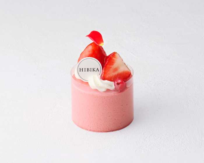 さらに苺とフランボワーズのムースで包み込み、甘酸っぱい国産苺をトッピングしています。見た目の可愛らしさと上品な味わいが両立した一品です。