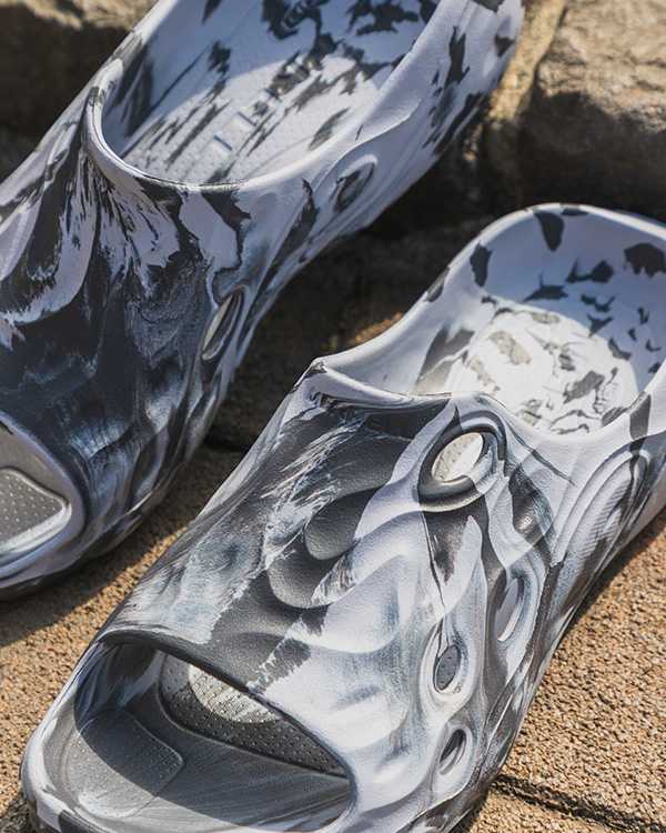 さらに、足裏にフィットする設計により長時間の着用でも疲れにくく、街歩きや旅行、アウトドアシーンでも活躍。マーブルカラーがアクセントとなり、コーディネートに抜け感と遊び心をプラスしてくれます。