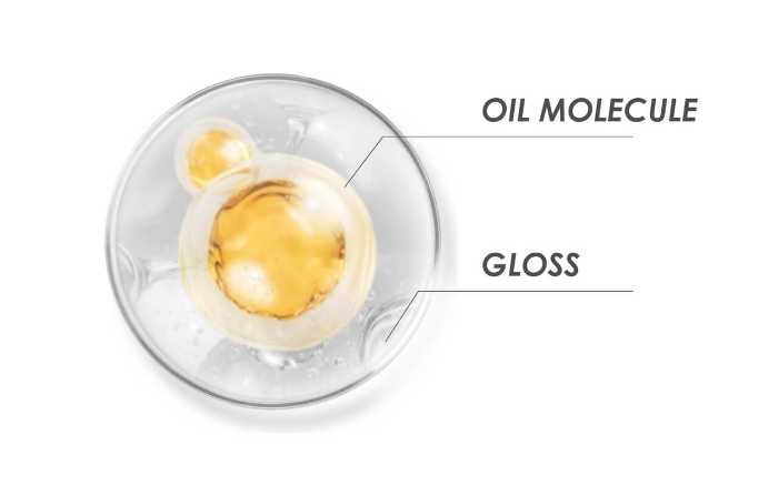 独自の「オイルインリップグロステクノロジー」により、グロスの中に保湿オイルを閉じ込め、唇をしっかりコーティング。