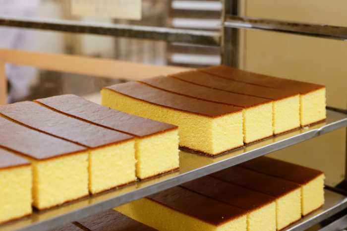 文明堂のカステラは、すべて職人の手作業によって丁寧に焼き上げられています。均一に火を通すことで実現するふわふわ食感や、繊細なチョコレートの絵柄も手仕事ならでは。
