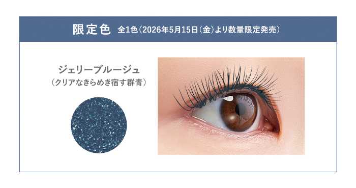 今回登場する限定色〈ジェリーブルージュ〉は、深みのあるブルーをベースに、透け感のある発色へ仕上げた特別カラー。