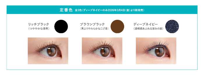 重たく見えがちな寒色系マスカラとは違い、まつげ1本1本をくっきり見せながら、軽やかで洗練された印象を演出します。