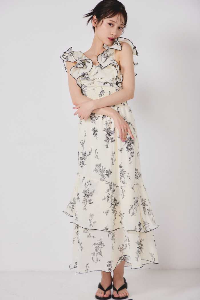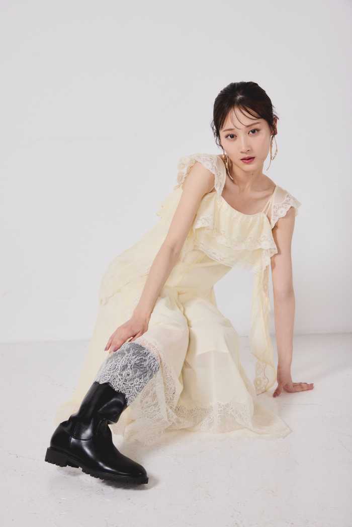 Dress20,900円は、上品さと女性らしさを兼ね備えた主役級アイテム。Shoes16,500円を合わせれば、デートやお出かけにもぴったりです。