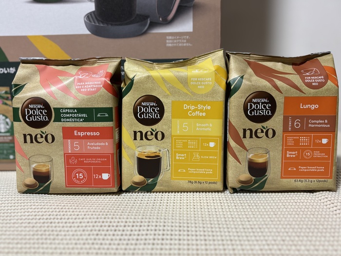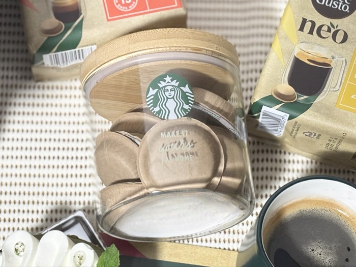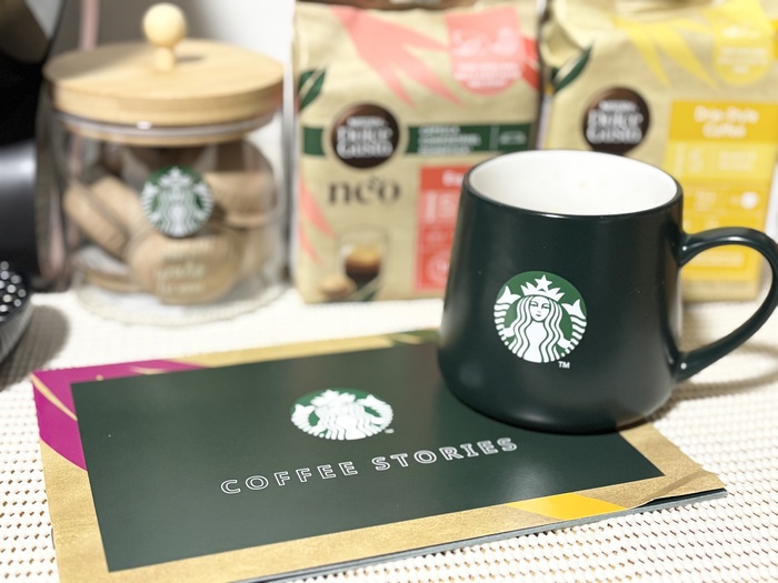 キャニスター、マグカップに「ネスカフェ ドルチェ グスト ネオ」専用コーヒーポッド「スターバックス® ハウスブレンド」が全て付いてくるので、開けた瞬間から自宅でコーヒー屋さん気分になりました。