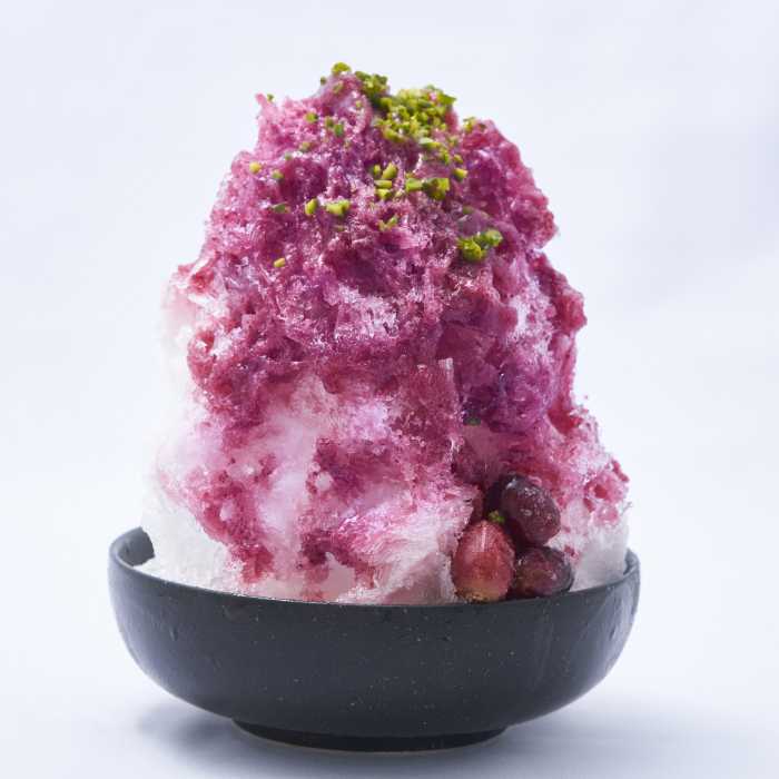 濃厚なぶどうシロップにピスタチオを合わせ、藤の花をイメージした上品な一品。